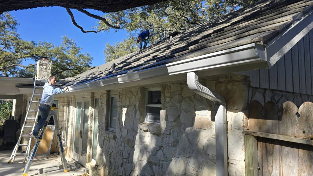 Protect your home with expertly installed 5″ and 6″ seamless rust-free aluminum gutters from Two Brothers Roofing. Our seamless gutters are custom-fitted to your home, offering a sleek, leak-resistant design that enhances both functionality and aesthetics.